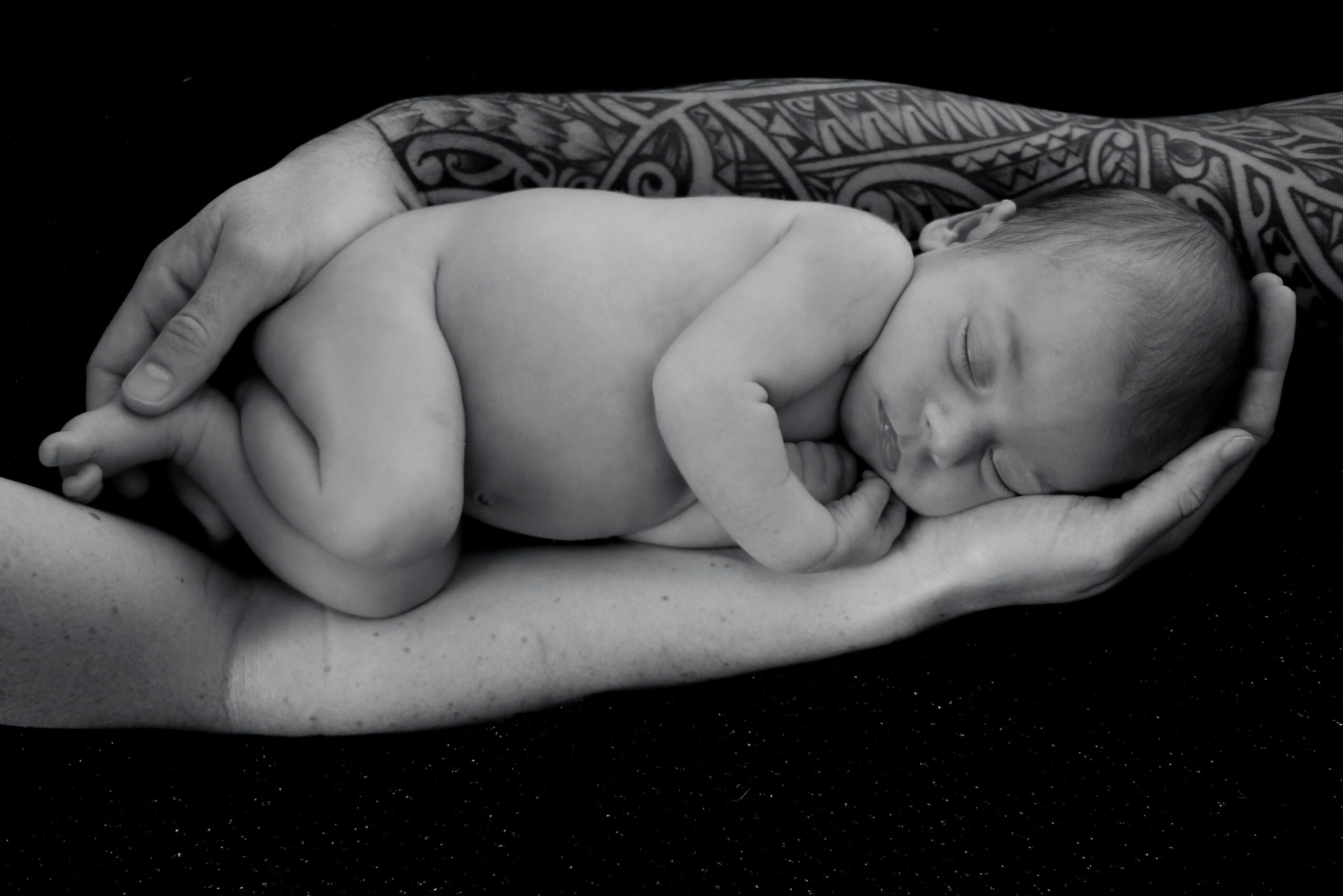 Bébé posé alongée entre papa et maman